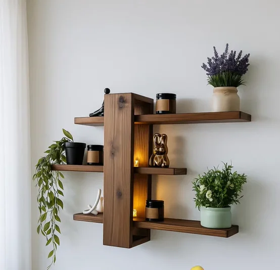 حوّل الحائط ديالك لمساحة أنيقة وعملية مع إتاجير خشبية بتصميم عصري،